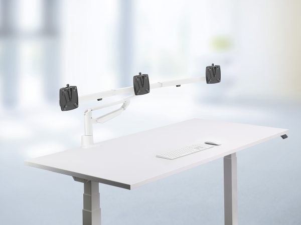 זרוע בוכנת גז, שני מפרקים בהטיה יישרה, מגיע עם קורה לחיבור עד שלושה מסכים, עם תפסן לגב השולחן, מתאים למסכים במשקל כולל בין 6-14 ק"ג בחלוקה שווה של המשקל בין המסכים. מתאים לווסה 75/100