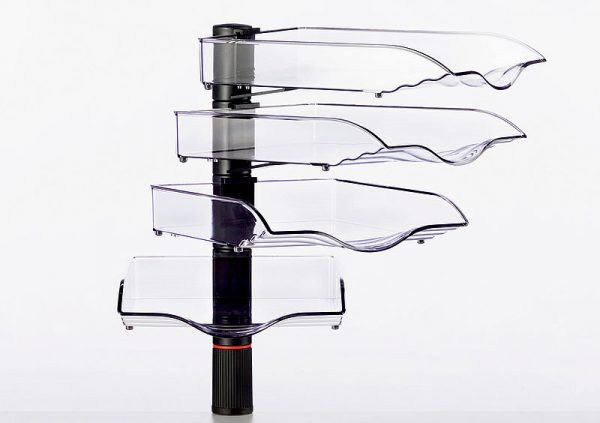 ארבעה מגשי פלסטיק שקופיים ואיכותיים לאחסון נייר B4 מידות – 250 x 353 מ"מ, מתחבר לשולחן במספר דרכים. המגש מסתבב 360 מעלות, המתאם לחיבור לשולחן מגיע בצבע אפור כהה או אפור בהיר